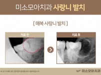 안녕하세요~ 미소모아치과입니다.오늘 소개해드릴 치료 후기는 매복 사랑니 발치 건 입니다.사랑니의 머리만 약간 맹출한 상태로..